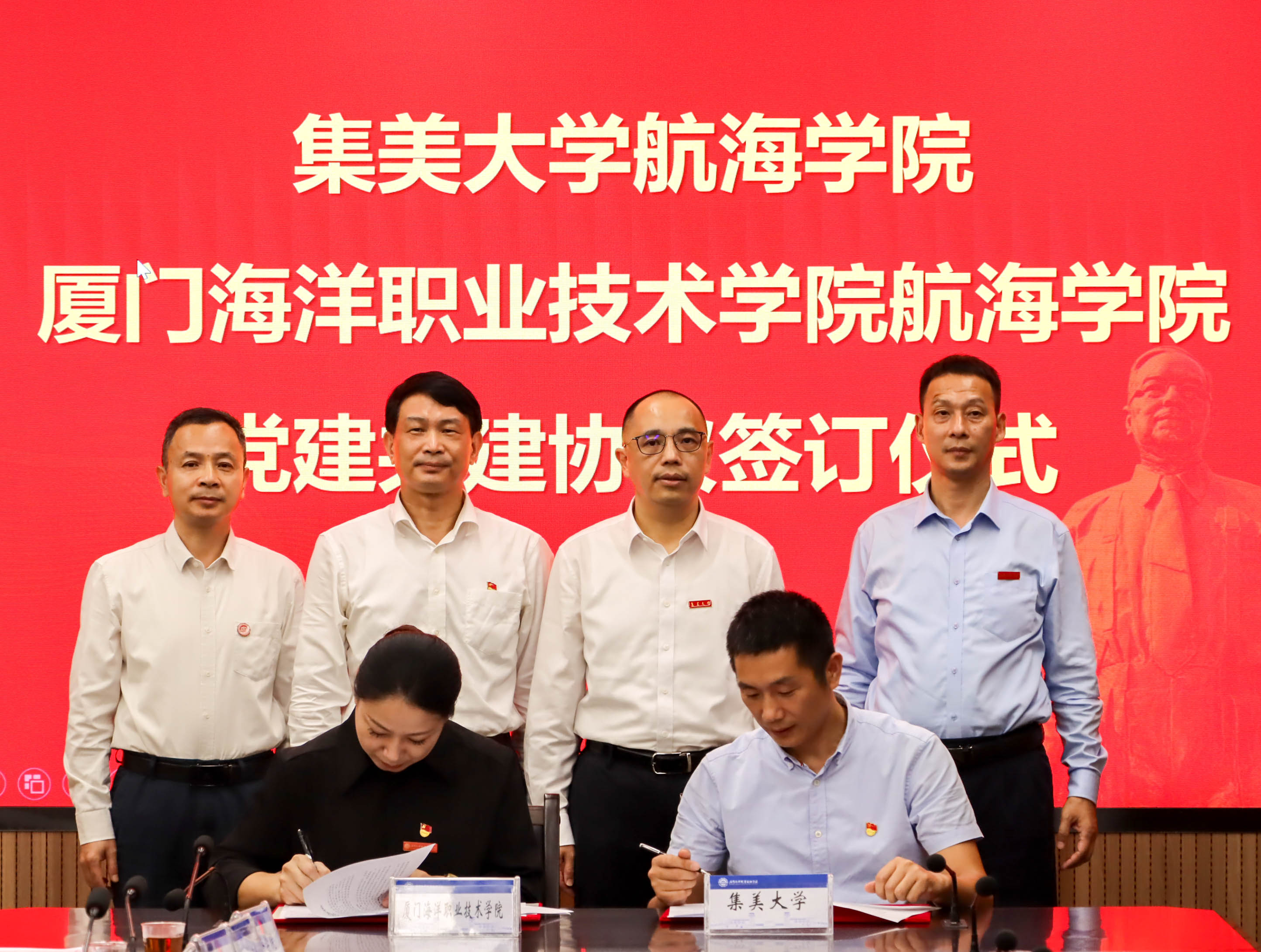 此次除签署两校战略合作协议外,我校航海学院、海洋生物学院分别与集美大学航海学院、水产学院签订党建共建协议,公共教育学院与集美大学体育学院签订合作共建协议并共同为“集美大学体育学院研究生教学实习基地”揭牌。