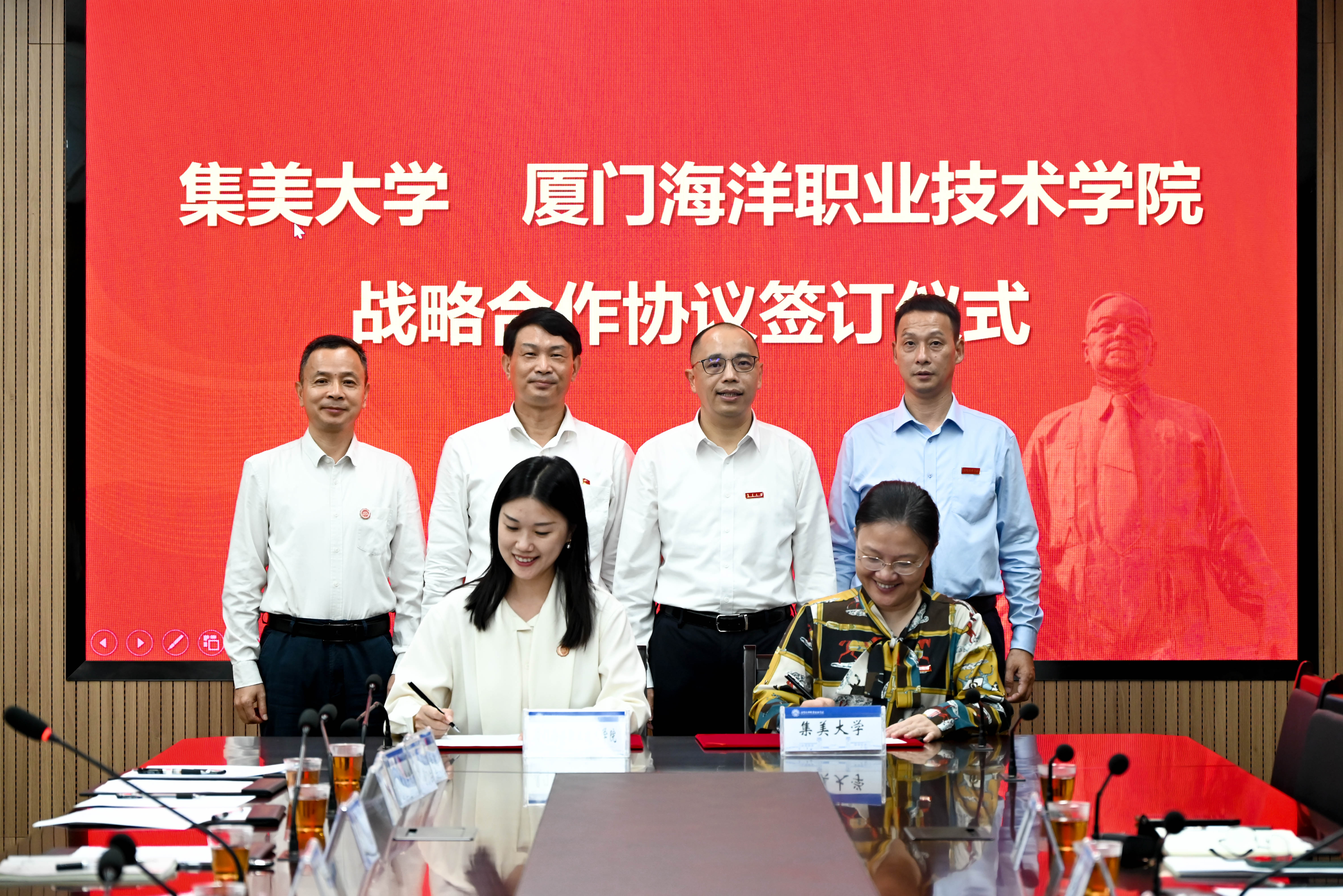 集美大学学校办公室、发展规划处,我校党政办公室、组织部、发展规划与质量管理处、人事处、教务处、对外交流合作中心、继续教育学院、科研与产教融合处等部门负责人参加签约仪式。