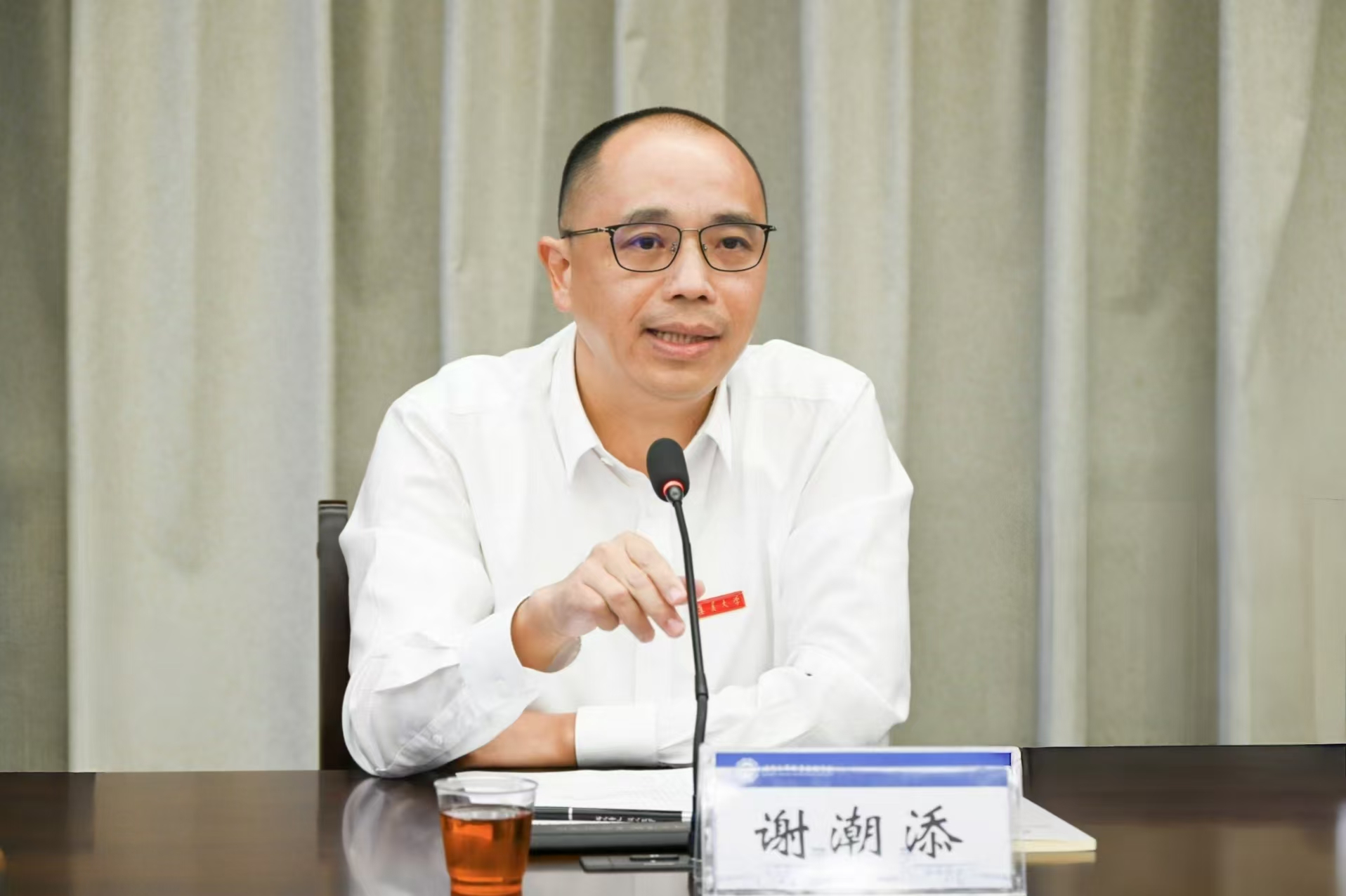 谢潮添回顾了集美大学的办学历史及与我校的深厚渊源,介绍了集美大学近年来秉持“工海”特色,在高层次人才引进、涉海学科专业建设、教学科研激励机制改革等方面的创新举措和突出成效。他表示,两校同根同源、文脉相通,希望今后能够“亲上加亲”,用好嘉庚谱系校际资源,全面深化交流互动,推动更多实质性合作项目落地生根、开花结果,携手书写高质量发展新篇章。