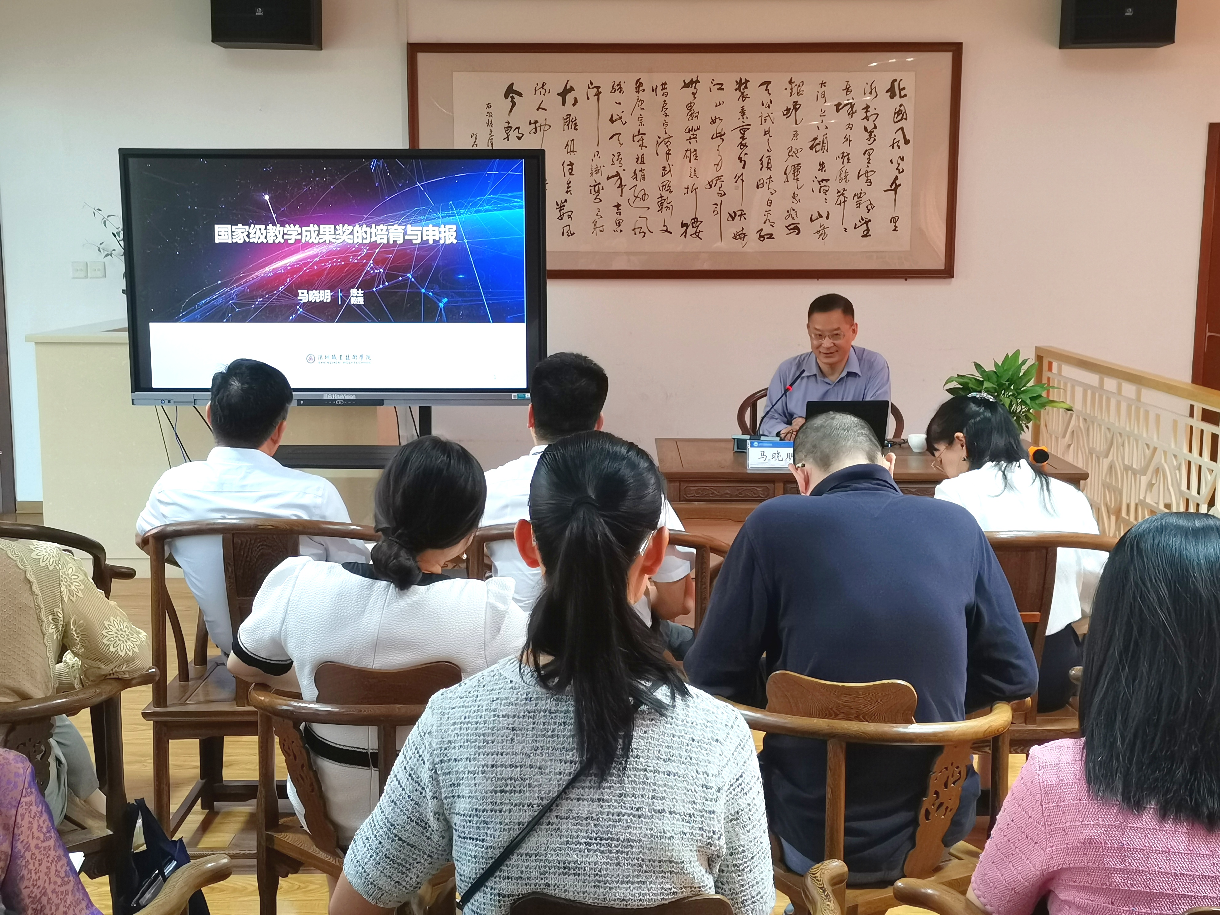 马晓明教授围绕“教学成果奖的简介”“教学成果奖的培育”“教学成果奖的申报”等内容展开阐述,重点分享了深圳职业技术大学(原深圳职业技术学院)国家级教学成果特等奖的培育和申报历程。报告内容丰富详实,对我校进一步深化教育教学改革、加强教学成果建设与凝练,具有很强的指导意义。