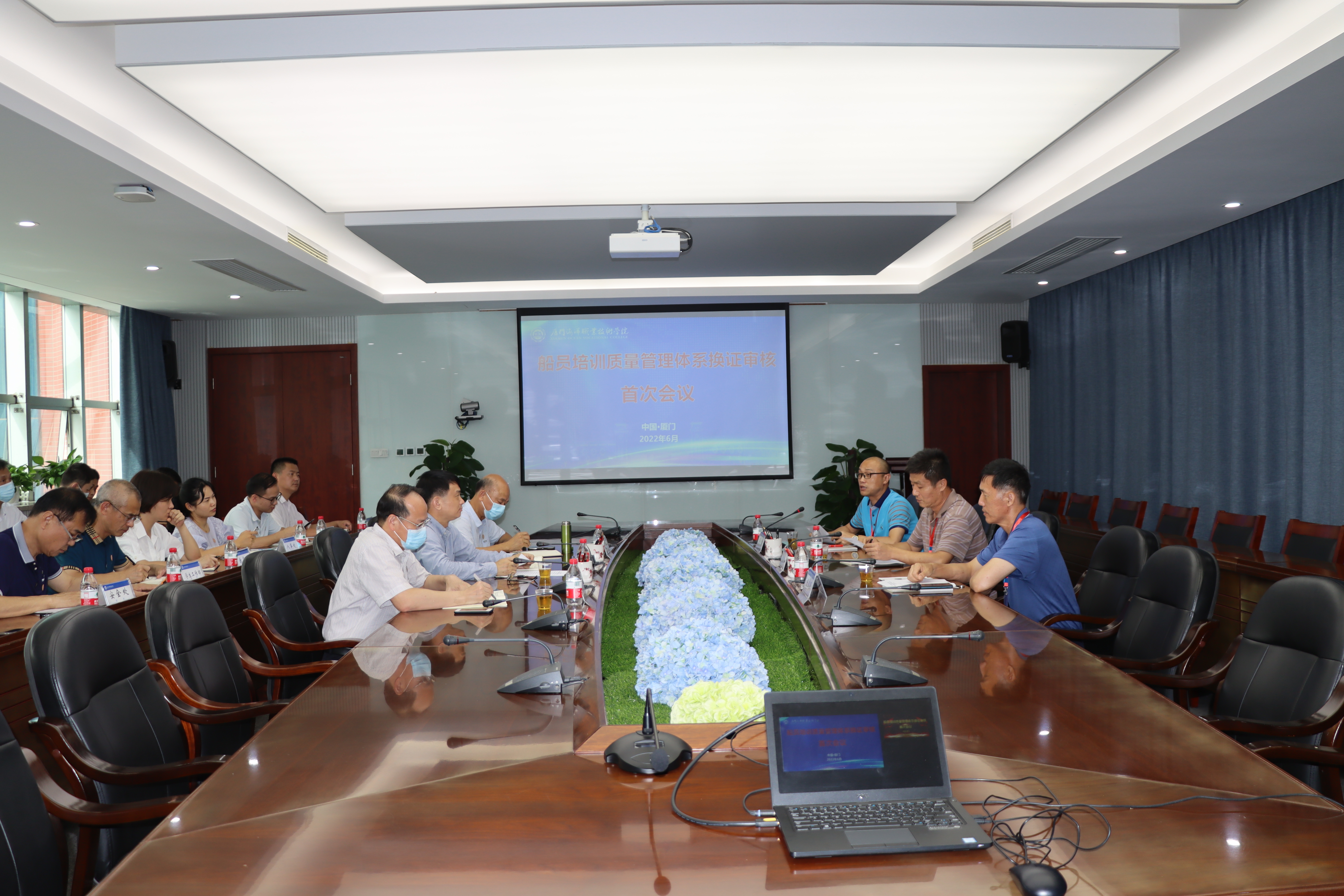 6月22日下午,审核专家组召开换证审核首次会议。会上,审核专家组组长翁启树通报了文件审核情况,介绍了此次审核的目的、范围、方法、程序和纪律。党委书记陈一端代表学校向审核专家组作质量体系运行情况报告。