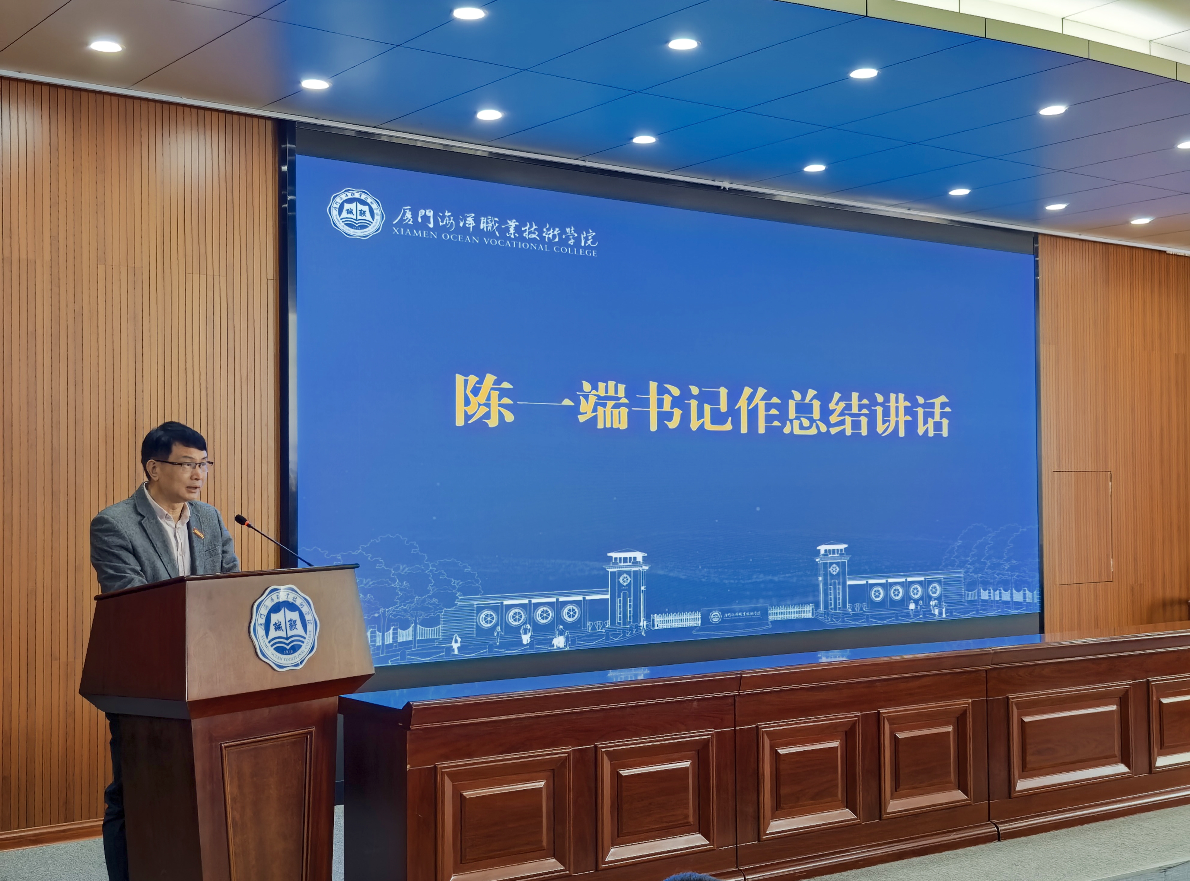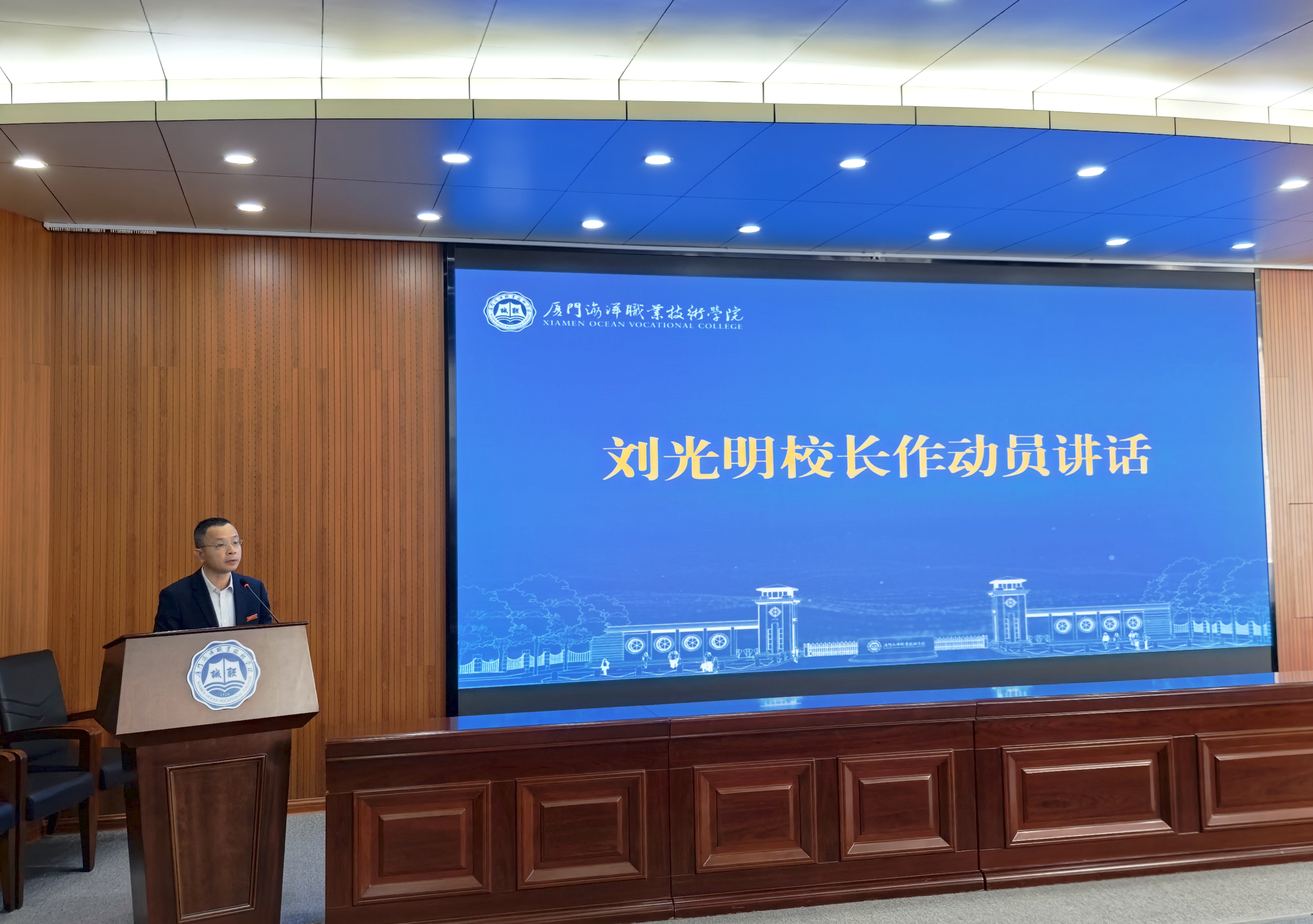 会上,院长刘光明作动员讲话,他指出办学能力评价是落实国家职业教育政策要求的重要任务,是学校实现高质量发展的内在需求,更是提升人才培养质量和社会服务能力的关键抓手。他全面回顾了学校近年来在各方面取得的标志性成果,同时客观分析了当前办学过程中存在的短板与不足,强调要以此次评价为契机,通过全面“体检”找准问题、补齐短板,为全力创建海洋职业大学扫清障碍。